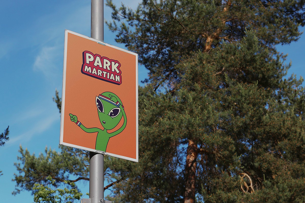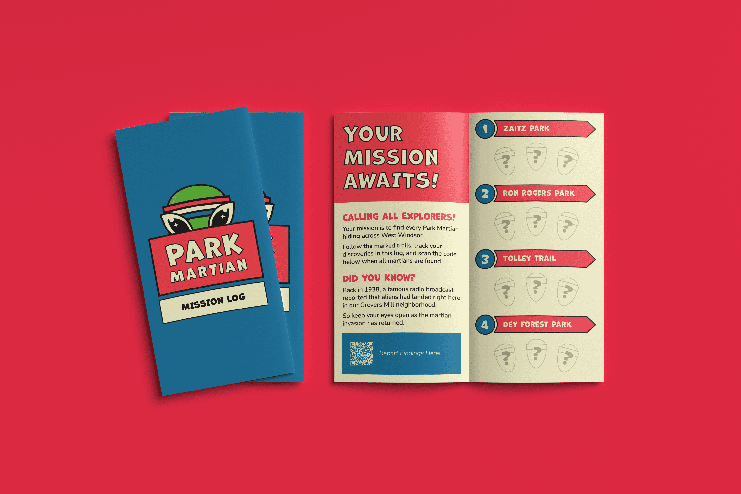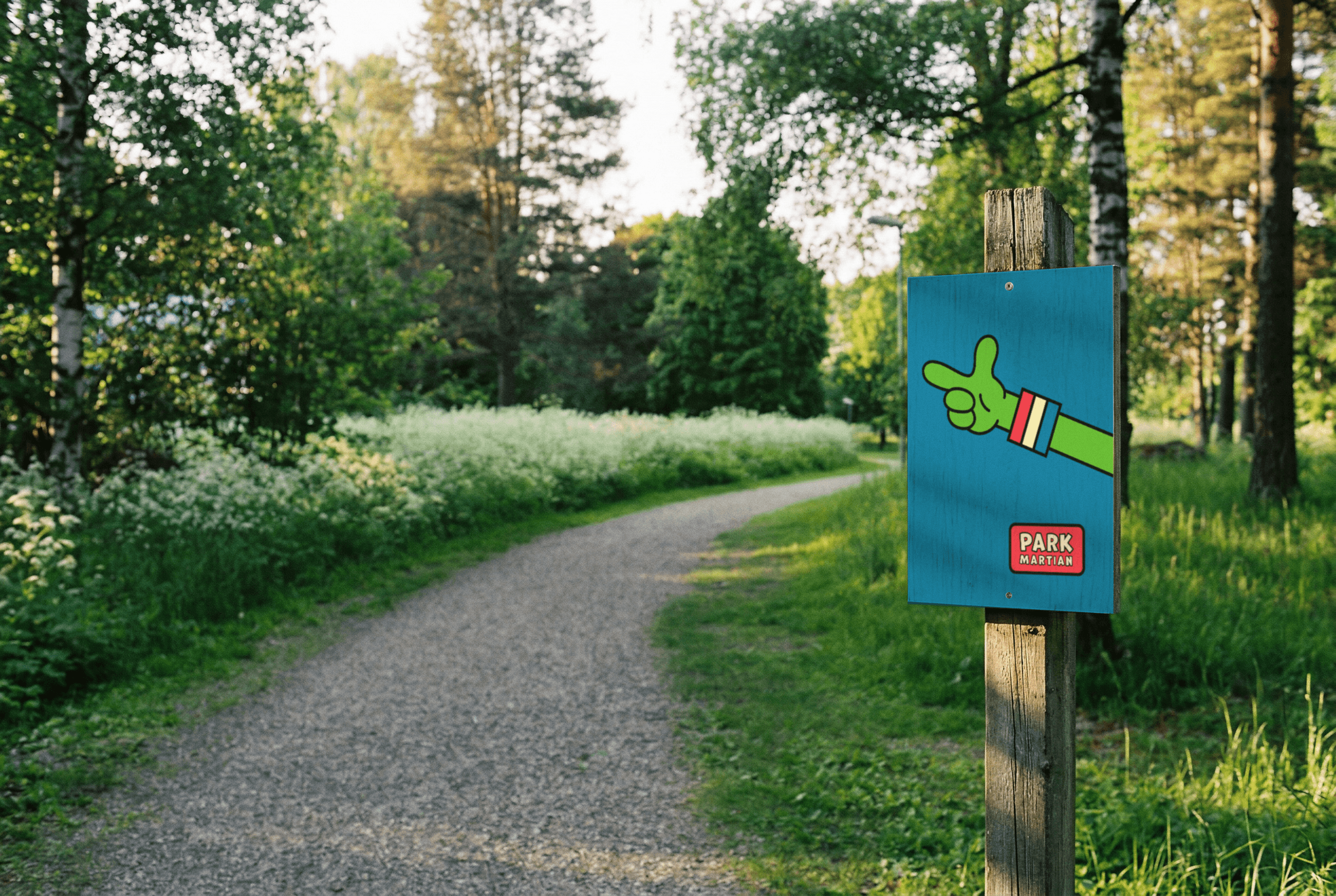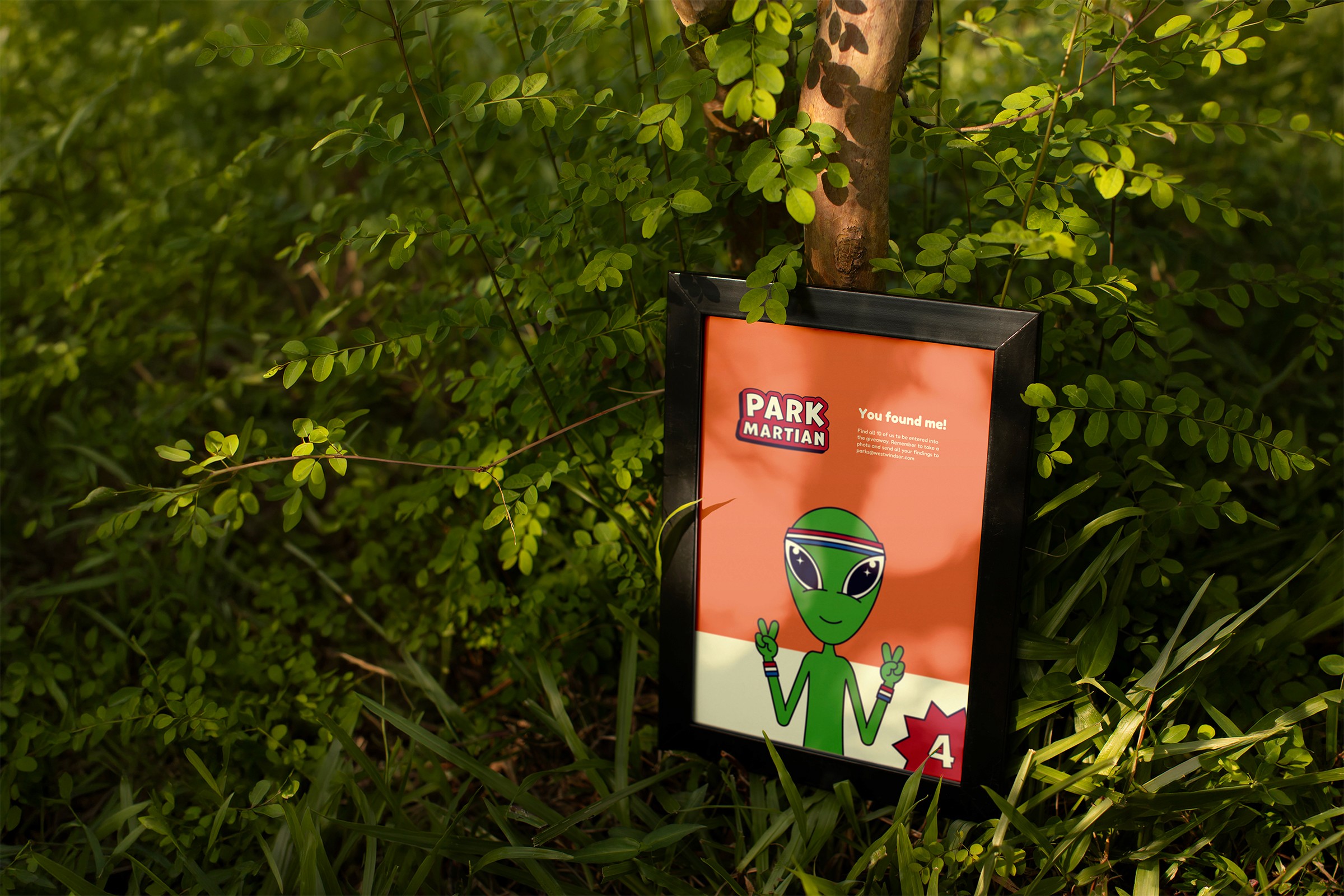Park Martian is a self-initiated community campaign built during early COVID-19, when families needed safe reasons to go outside. Parks were socially distant, free, and underused. Developed with the town's Parks and Recreation Department, the project turns local green spaces into active experiences through hidden illustrated posters that give families a reason to walk, explore, and discover together.